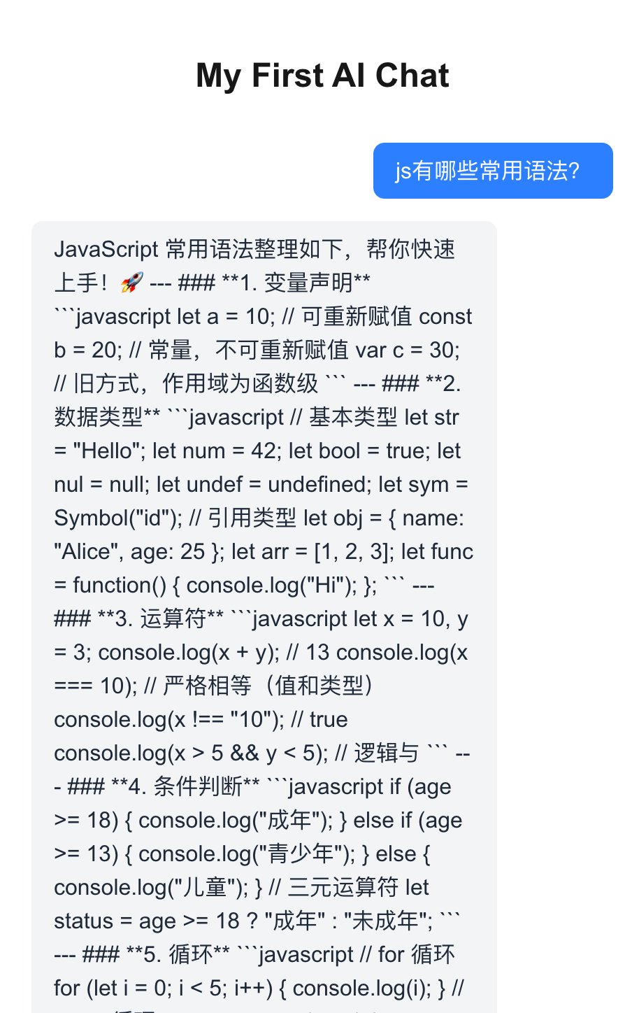 Day 2 我们解决了“面子”问题(Markdown 渲染与代码高亮),让 AI 的回复变得美观可读。